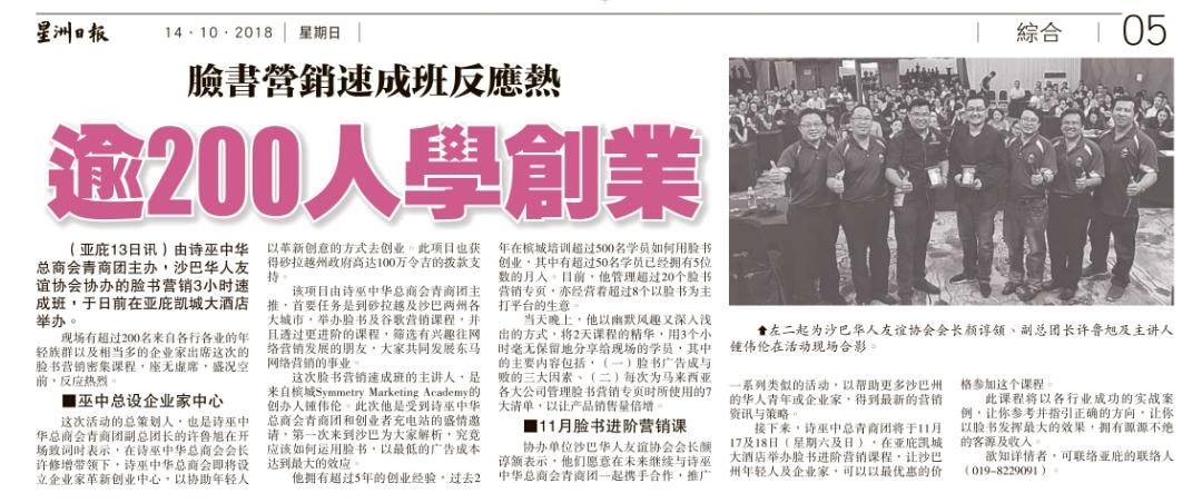 在2016年年底,创办了Symmetry Marketing Academy, 一个以 "By Entrepreneurs, For Entrepreneurs" 为宗旨的教育公司,开始了第一个网络营销2日工作坊,直至今天,已经有4年的教导经验。